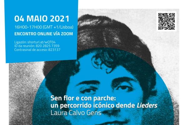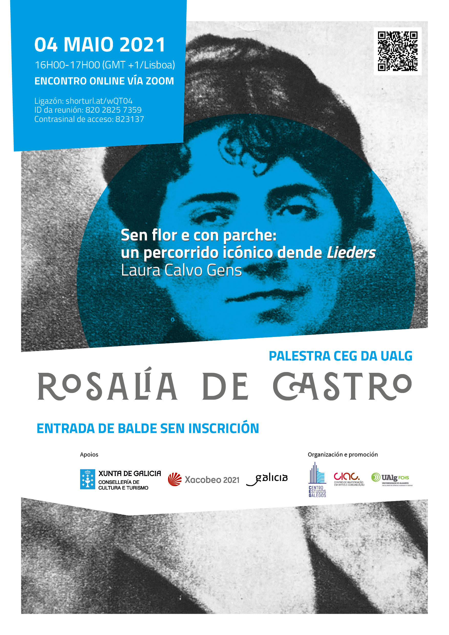 A palestra en liña "Sen flor e con parche: un percorrido icónico dende Lieders", terá lugar o martes, 4 de maio de 2021, ás 16:00h. Esta comunicación profundará nas distintas representacións artísticas que ao longo do tempo se teñen feito sobre Rosalía de Castro.
