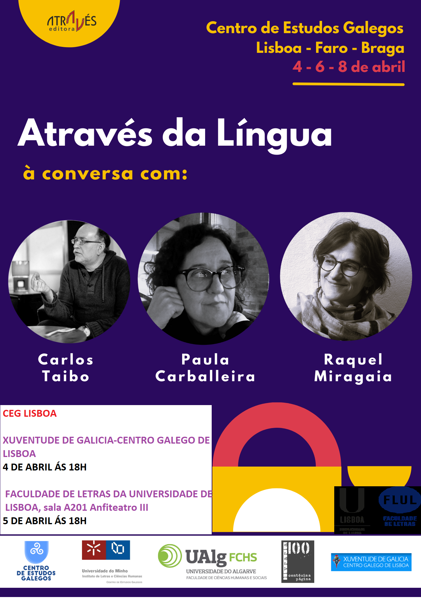 Celebrarase dous días: o luns 4 de abril ás 18h en Xuventude de Galicia - Centro Galego de Lisboa e o martes 5, ás 18h, na Facultade de Letras da Universidade de Lisboa.