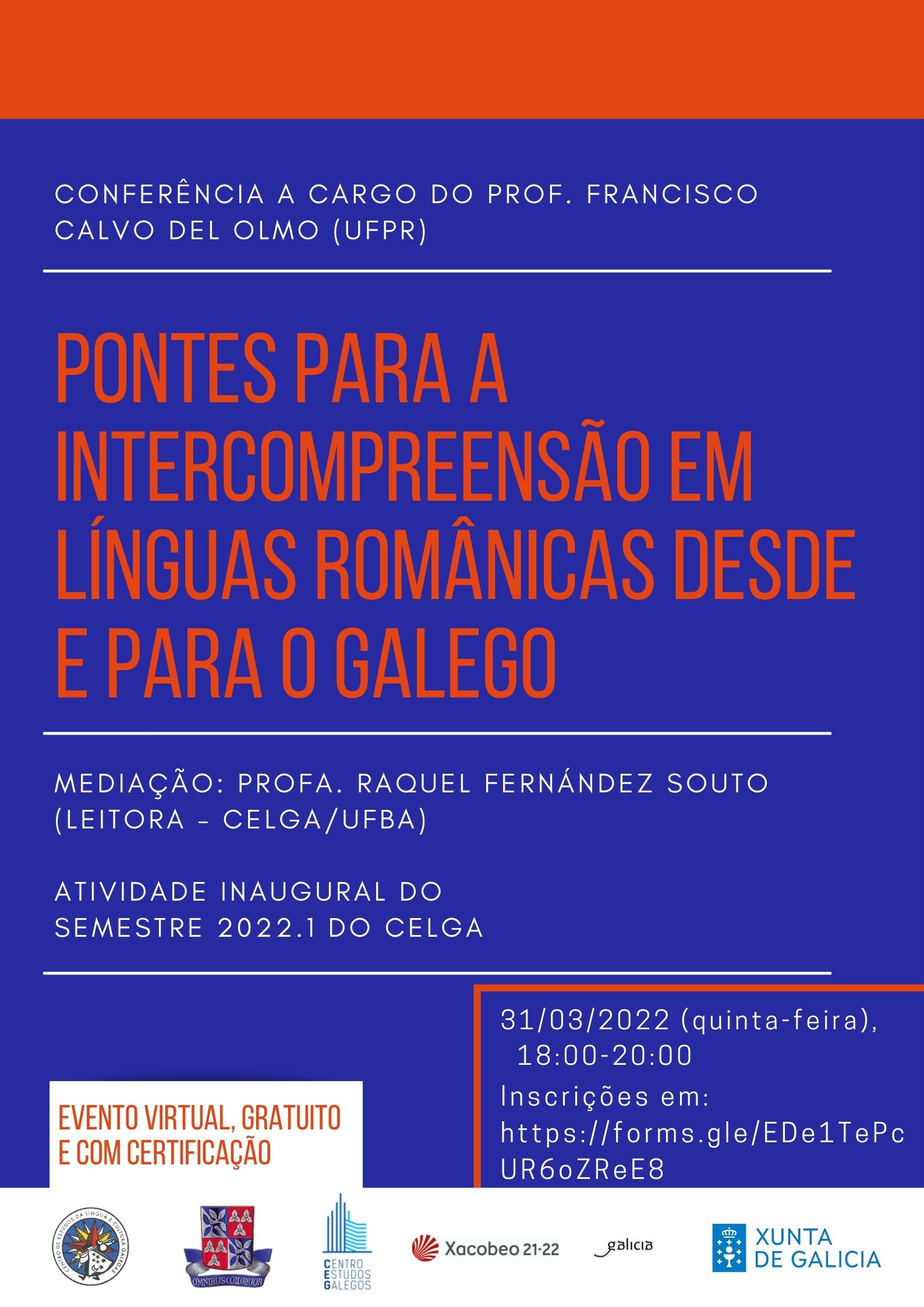 "Pontes para a comprensión en linguas románicas desde e para o galego", conferencia a cargo do profesor Francisco Calvo del Olmo (UFPR).