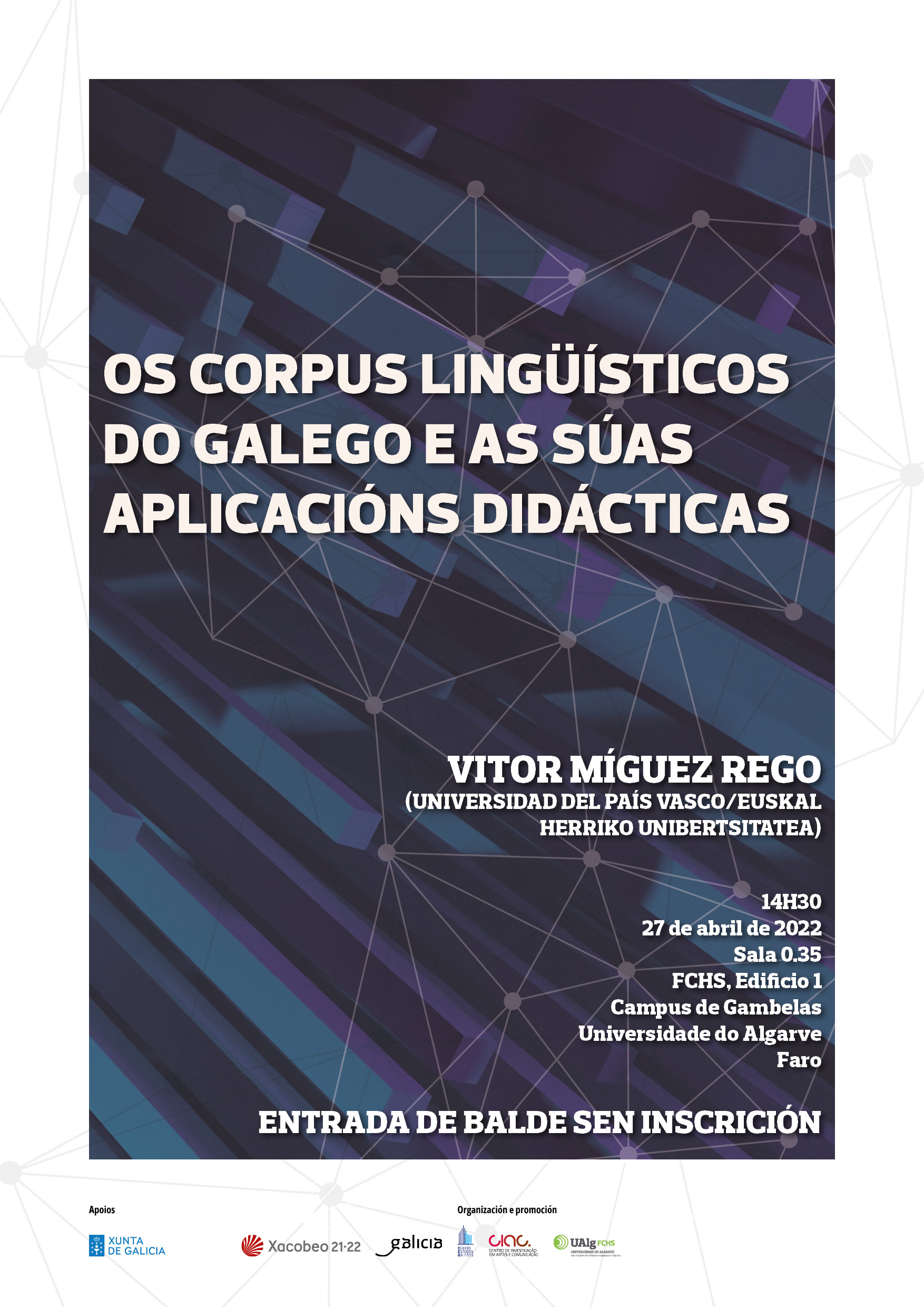 Conferencia "Os corpus lingüísticos do galego e as súas aplicacións didácticas", a cargo de Vítor Míguez Rego (lector na Universidad del País Vasco / Euskal Herriko Unibertsitatea).