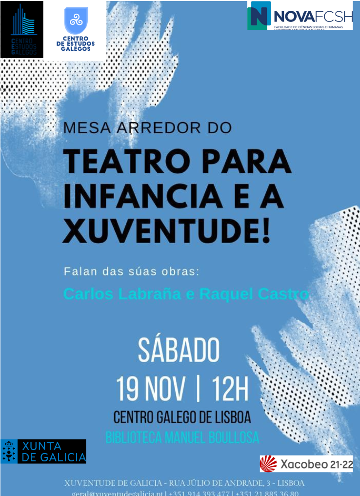 O 19 de novembro o Centro de Estudos Galegos de Lisboa celebrará unha conferencia de Carlos Braña e Raquel Castro, con posterior coloquio e mesa redonda, sobre algunhas das súas obras de teatro. Os autores centraranse nas claves para captar a atención da xente máis nova e dos adolescentes nun xénero literario moitas veces esquecido e non comprendido.