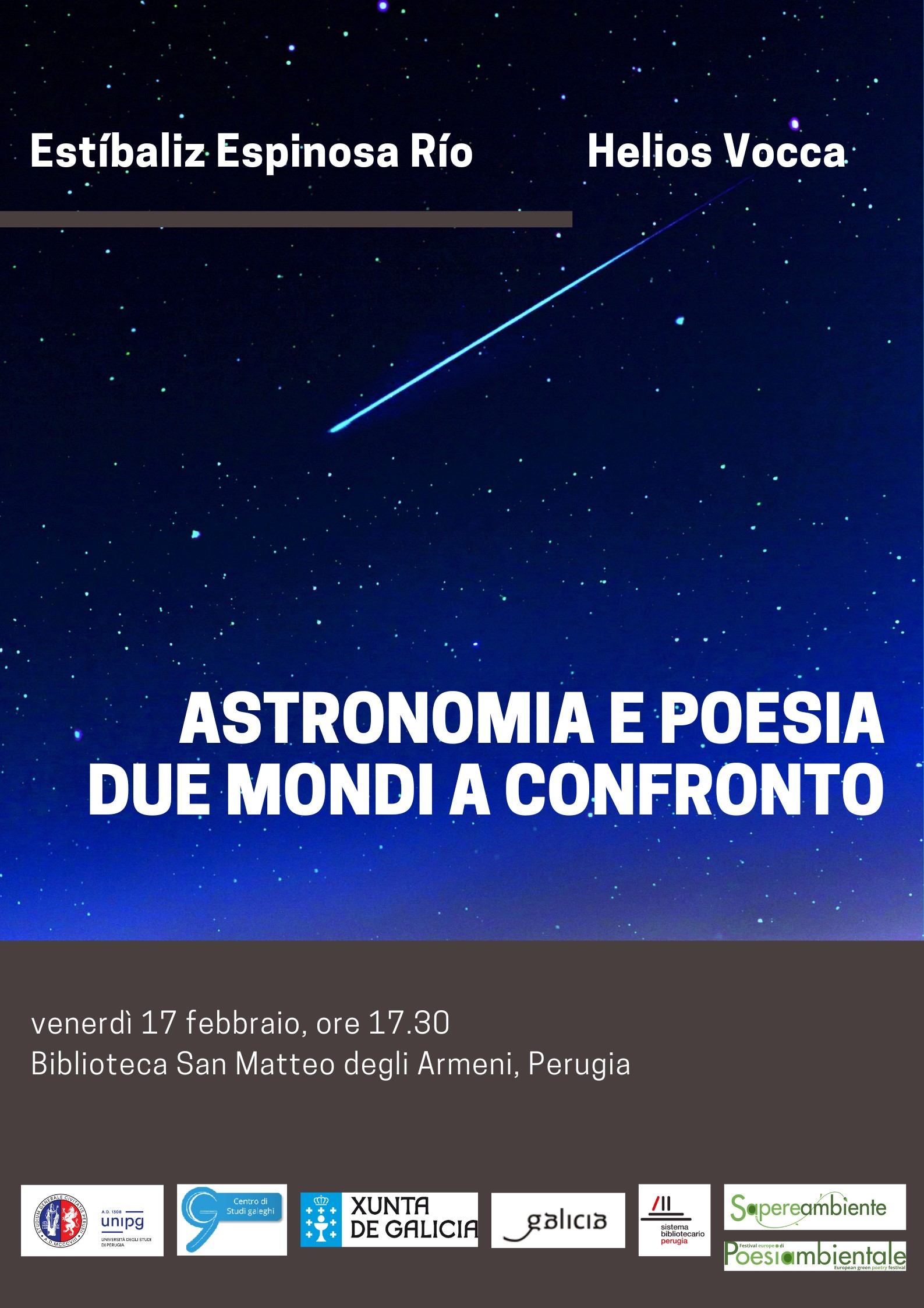 Será na Biblioteca de San Matteo degli Armeni en Perugia (Italia). O encontro enmárcase dentro das actividades que organiza o Centro de Estudos Galegos desta cidade. Entre os aspectos que se tocarán están algúns conceptos metafóricos como o da Vía Láctea, a materia escura ou os buratos negros, ou as imaxes do telescopio espacial James Webb.
