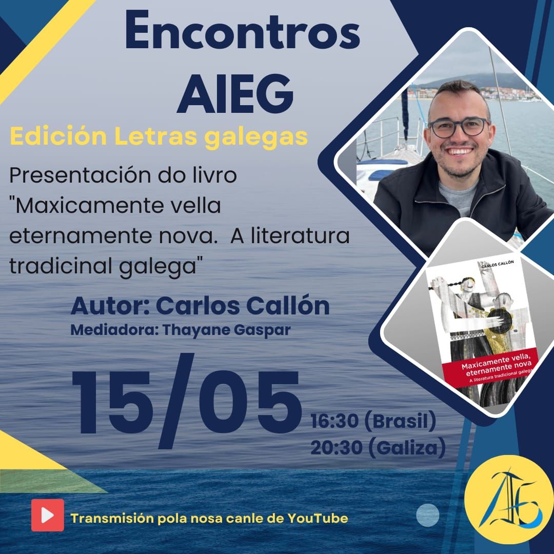 A Asociación Internacional de Estudos Galegos organiza a presentación da obra Maxicamente vella, eternamente nova, do escritor e investigador Carlos Callón, que terá lugar este xoves 15 de maio, ás 16:30 (hora do Brasil) / 20:30 (hora galega), a través da canle de YouTube. Será unha oportunidade para reflexionar sobre a riqueza e a actualidade da nosa cultura, ao tempo que celebramos a vitalidade da lingua galega a través da palabra e da música.