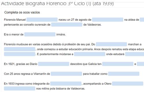 Nesta actividade que nos propón o EDLG Ghafos CEP Campolongo teremos que ir enchendo ocos para coñecermos a primeira parte da biografía de Florencio Delgado Gurriarán (ata 1939).
