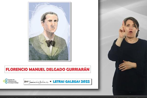 O Seminario Galán acaba de incorporar ao seu extenso material das Letras Galegas 2022 este vídeo en lingua de signos da intérprete María Bao Fente coas biografías, exposición e obra literaria de Florencio Delgado Gurriarán para infantil e primaria, e con ilustracións de Carlos Gallego.