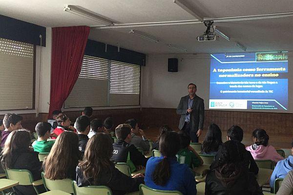 O filólogo especialista en toponimia Vicente Feijoo visita os dragaliños e dragaliñas para achegalos ao coñecemento da súa contorna, da historia dos seus antepasados, da literatura popular e da súa lingua a través do estudo dos topónimos e dos seus respectivos concellos. E todo iso, traballando a través das tecnoloxías da información e da comunicación.
