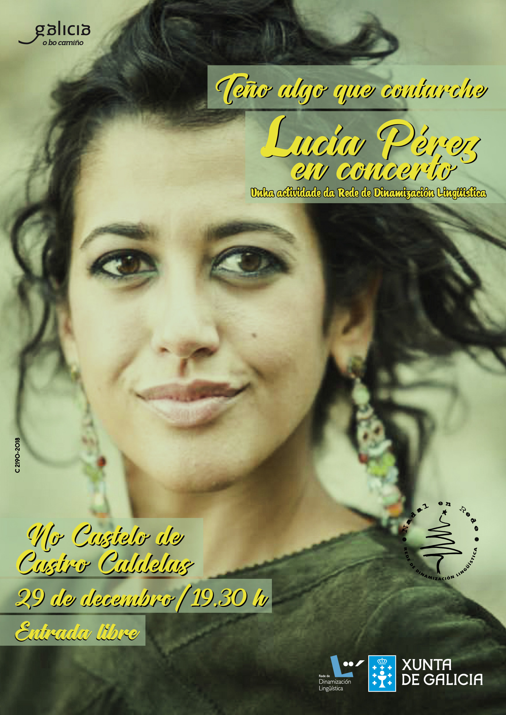 A cantante galega que representou a España en Eurovisión no ano 2011 interpretará no seu concerto Teño algo que contarche cancións do seu novo disco Quince soles. Este traballo está composto por temas en galego que lle dan un novo xiro musical a poemas de Celso Emilio Ferreiro, Xosé Neira Vilas, Castelao ou Rosalía de Castro, entre outros. Teredes ocasión de cantar e bailar con Lucía Pérez nas seguintes datas e lugares: