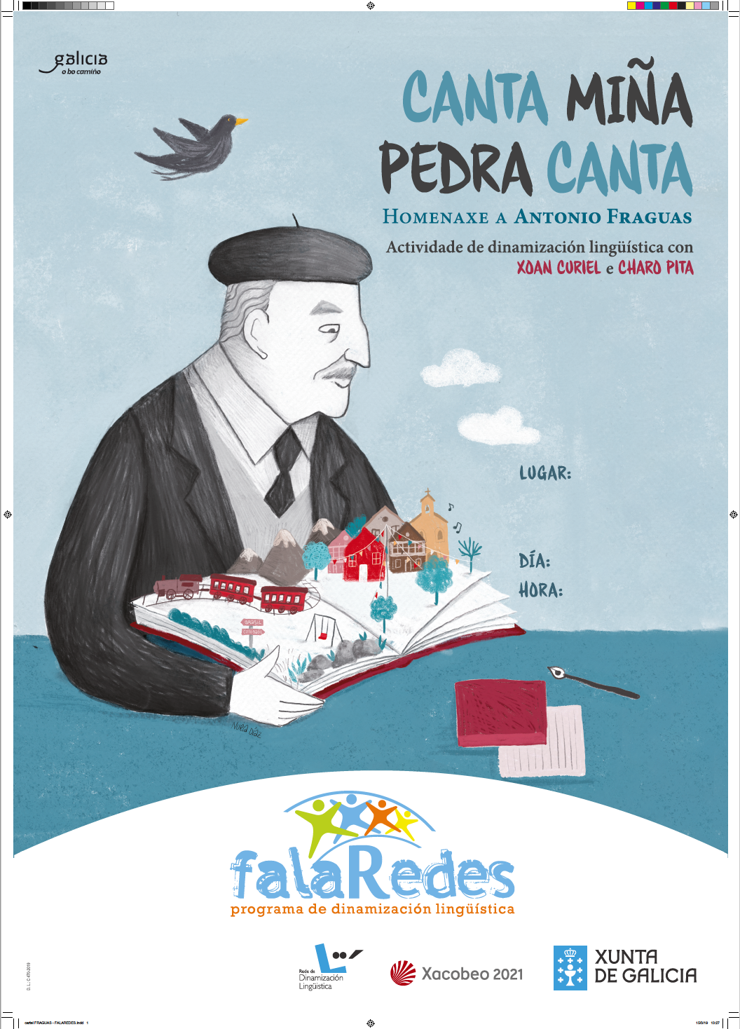 Tras o seu éxito con Estamos no verán!!! e A casa do terror, Xoán Curiel volve ao FalaRedes acompañado, desta volta, da contadora Charo Pita. Xuntos ofrecen un espectáculo que combina as narracións tradicionais coas cantigas que don Antonio Fraguas, a quen este ano se lle dedicará o 17 de maio, recolleu nas súas Aportacións ao Cancioneiro de Cotobade . Deste xeito, FalaRedes 2019 ábrese cunha homenaxe ao autor das Letras Galegas deste ano.