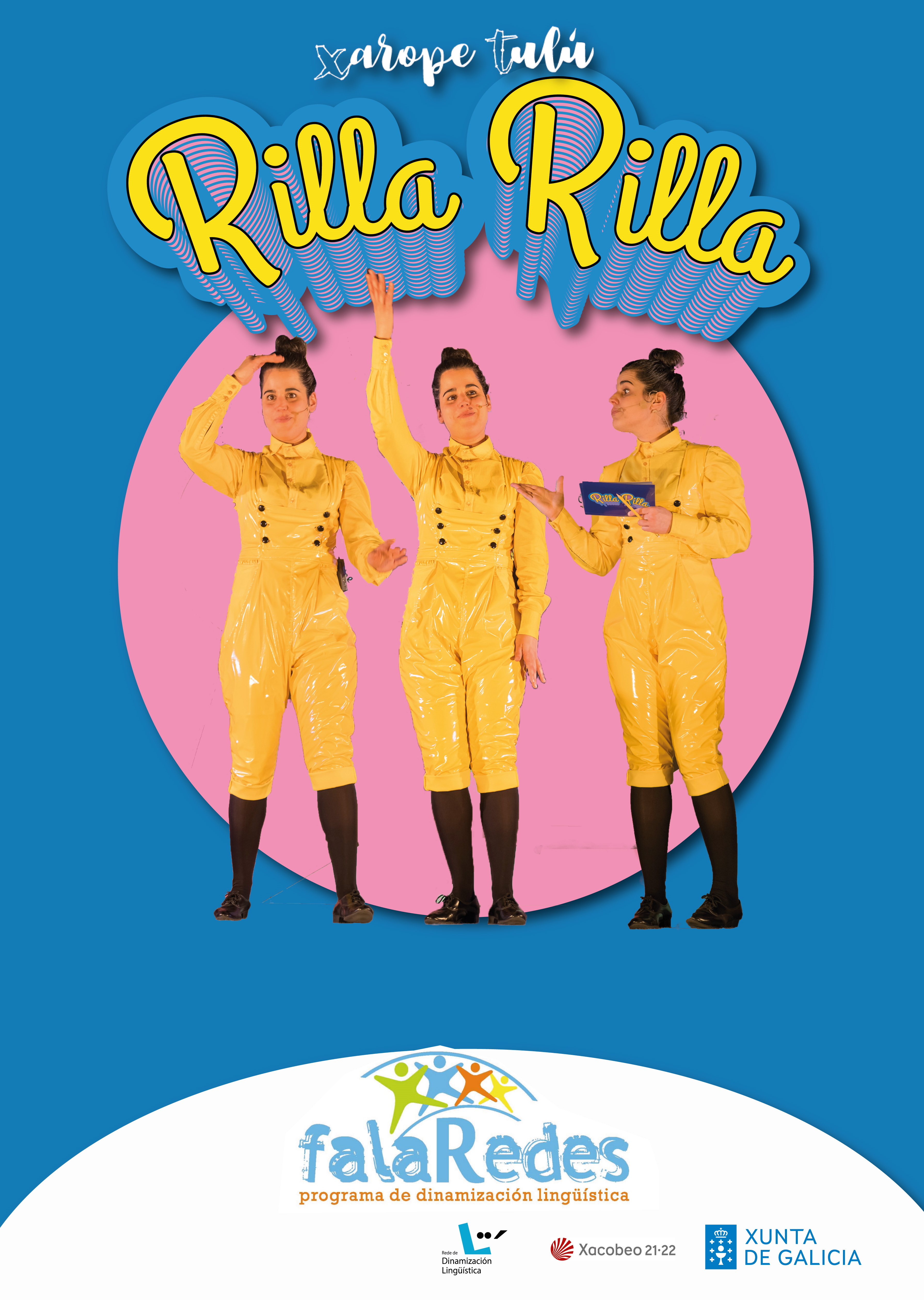 Rilla rilla é un espectáculo da compañía Xarope Tulú, dirixido a todos os públicos a partir de 6 anos, que persegue poñer de manifesto a variedade dialectal do noso idioma. A través do relato irémonos mergullando nun mundo con idiosincrasia propia que estivo aí sempre e ao que poucas veces lle puxemos atención. As ondas e o salitre hannos levar ao lugar das palabras esquecidas. Rilla rilla é un espectáculo dinámico onde o público pasa a ser protagonista desde o primeiro momento.