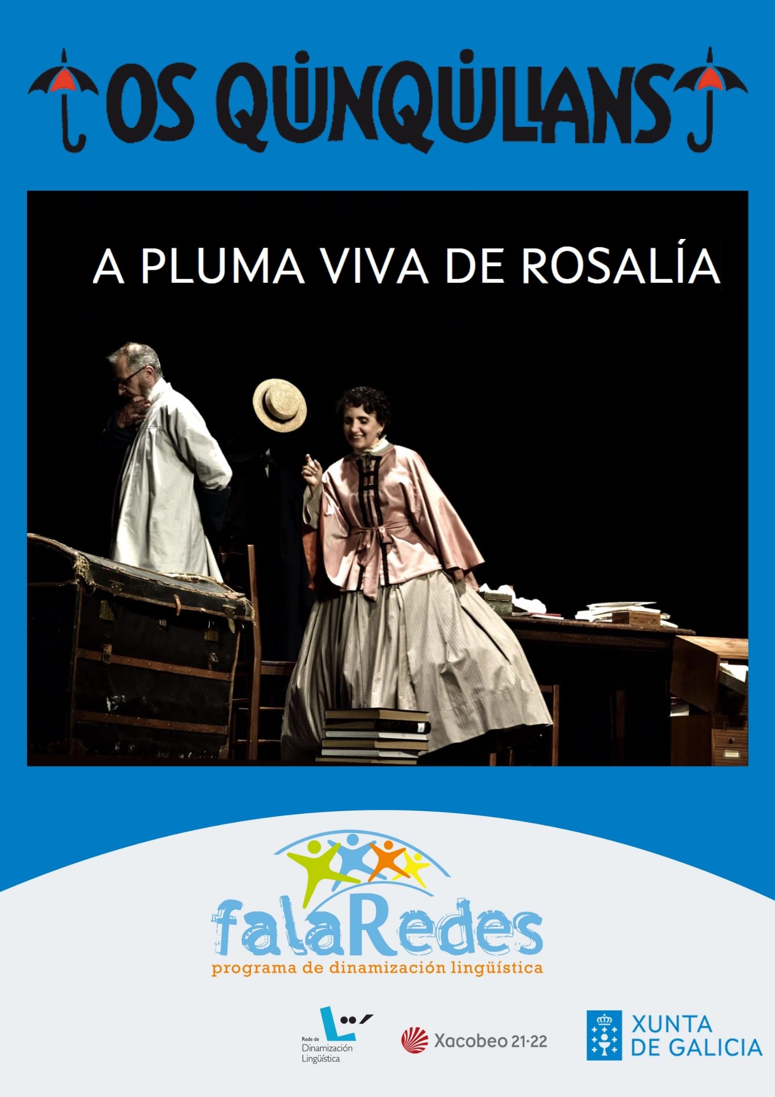 Este espectáculo teatral poderá verse desde finais de outubro nas seguintes entidades da Rede de Dinamización Lingüística: Negreira, O Rosal, Malpica, GDR Terras de Compostela e Fundación Pazo de Mos.