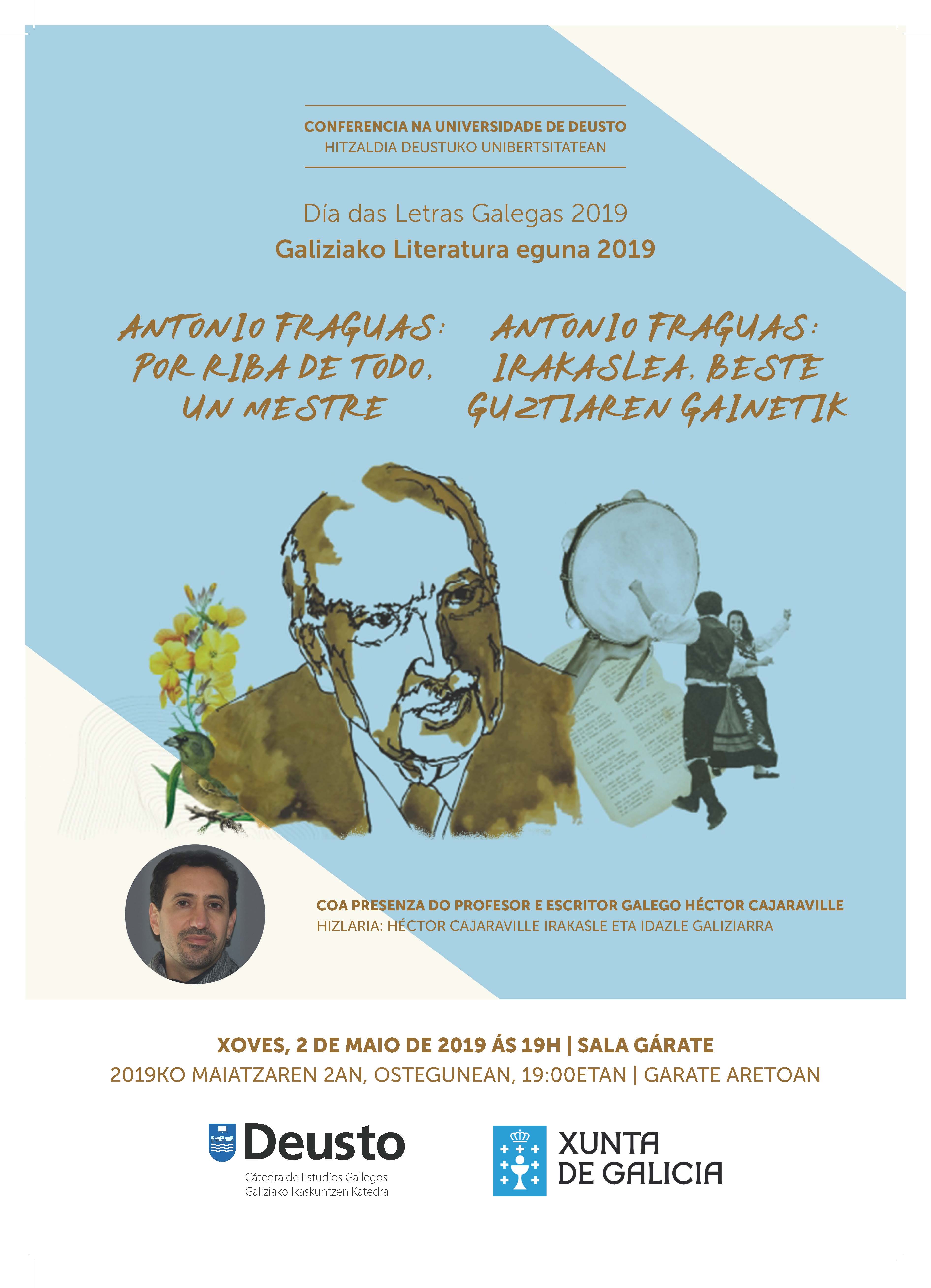 O Centro de Estudos Galegos de Deusto convida a Héctor Cajaraville a falarlle ao alumnado de galego e a todo o público interesado de Antonio Fraguas Fraguas, a quen se lle dedica o Día das Letras Galegas 2019