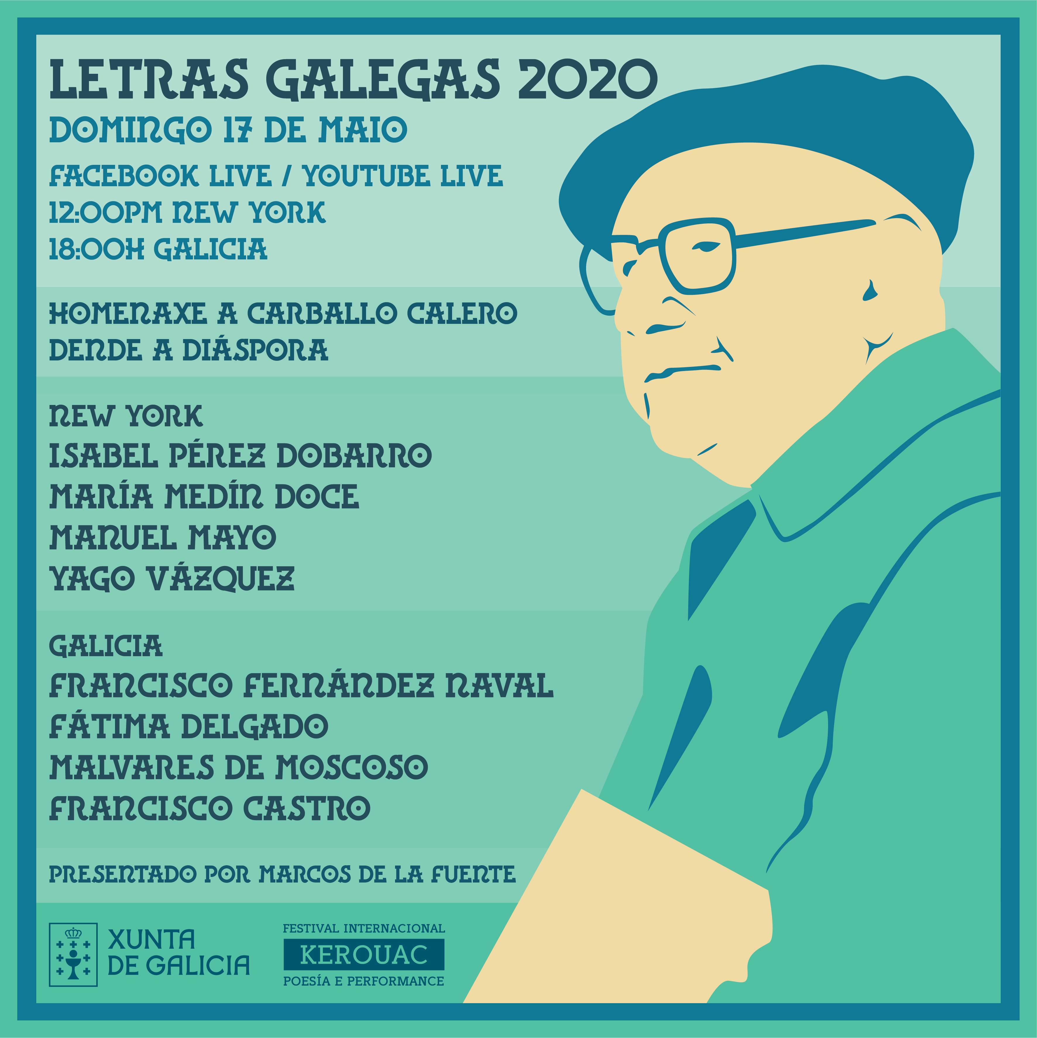 O Festival Internacional Kerouac Poesía e Performance, coa colaboración da Secretaría Xeral de Política Lingüística, organiza este encontro dixital a través da plataforma Zoom que será retransmitido por Facebook e Youtube Live. Con el convídase a artistas galegos e representantes do mundo da cultura en Estados Unidos a sumarse á celebración do Dia das Letras Galegas.