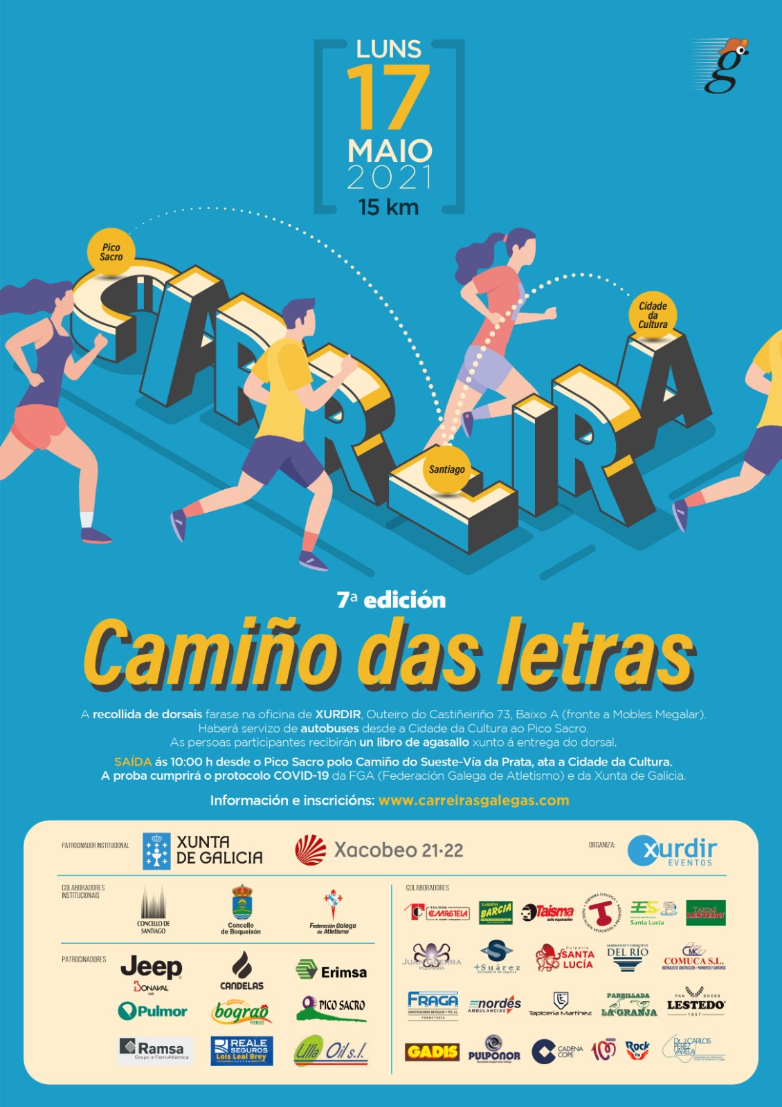 A Consellería de Cultura, Educación e Universidade, por medio das secretarías xerais de Política Lingüística e de Cultura, en colaboración con Xurdir S.L., organiza a VII edición da Carreira Camiño das Letras, que busca unir a práctica deportiva coa conmemoración do Día das Letras Galegas e o simbolismo do Camiño de Santiago.