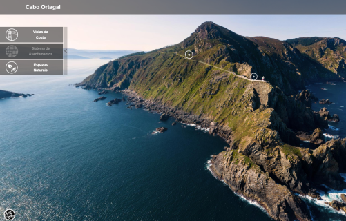 Proxecto baseado na creación de contornas virtuais inmersivas a través de fotografías esféricas que integran na súa visualización diversos contidos temáticos para a interpretación do territorio nunha lectura ampla e coherente. Inclúense contidos textuais (textos explicativos sobre puntos de interese do ámbito de percorrido 360º); audiovisuais (vídeos curtos temáticos, reportaxes fotográficas ou audios de distinto tipo); cartográficos e fotográficos, tanto históricos como actuais; documentais (fichas descritivas, ligazóns a webs e outra información de interese; infográfico-esquemáticos que axuden a comprender o exposto e de toponimia.